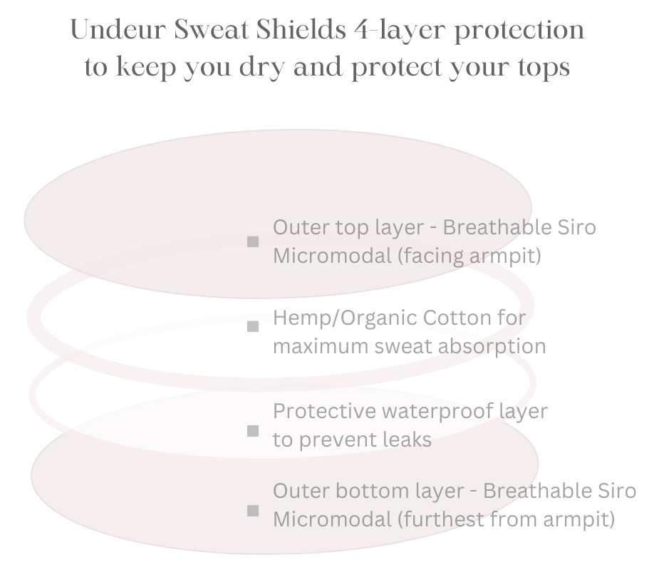 Featuring 4 layers of comfortable protection, Undeur shield pads stop sweat and deodorant stains before they start! - Premium Comfort:
